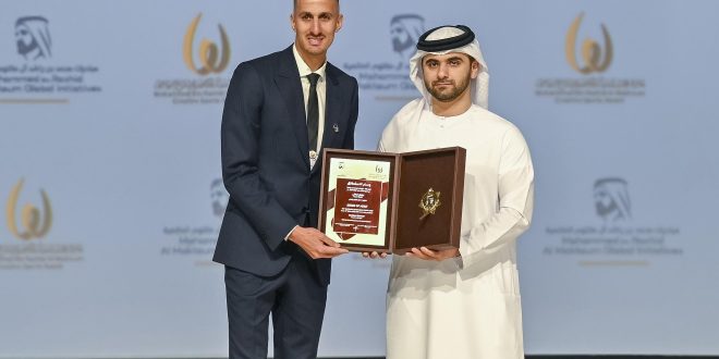 جاء ذلك خلال الحفل الكبير الذي نظمته “جائزة محمد بن راشد آل مكتوم للإبداع الرياضي”، الأربعاء 10 يناير 2024، في قاعة “أرينا” بمدينة جميرا، بحضور سمو الشيخ حشر بن مكتوم بن جمعة آل مكتوم، رئيس اتحاد الإمارات للتنس، وشارك في التكريم معالي مطر الطاير، رئيس مجلس أمناء “جائزة محمد بن راشد آل مكتوم للإبداع الرياضي”، وموزة المري، أمين عام الجائزة.