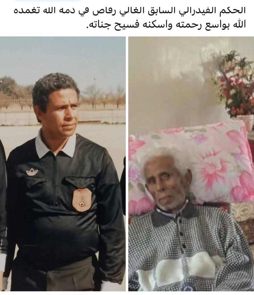 انتقل الى عفو الله تعالى المرحوم الغالي الرقاص الذي كان خلوقا ومثالا يقتدى به ، من بين الحكام المغاربة عاصر المرحوم سعيد بلقولة وعزيز بلفتوح وعمر الطاهري اطال الله في عمره ، وغيرهم كثير …من مدرسة التحكيم الفاسية التي كان يشرف عليها باقتدار كبير إدريس الجناتي ، كرئيس وبتوجيهات وخبرة المرحوم عيسى جقاوة ومحمد باحو .