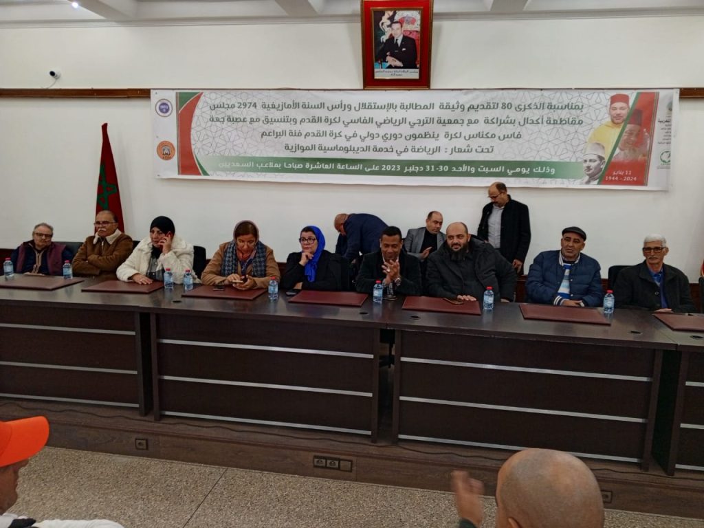 واشار خلال حفل الاستقبال الذي نظمه مجلس المقاطعة اليوم السبت على هامش هذا الدوري، بحضور رئيس المجلس السيد محمد ….ورئيسي مجلسي مقاطعتي المرينيين وجنان الورد ونائبات ونواب الرئيس وعدد من الاطر الرياضية بالمجلس،اشار الى رمزية الذكرى التي يقام على هامشها هذا الدوري بالنسبة للمغاربة ، والتي تتزامن مع الاحتفال بالسنة الامازيغية ، وهذه المناسبات تشكل احداثامهمة بالنسبة للمغاربة تحت قيادة الملوك العلويين محمد