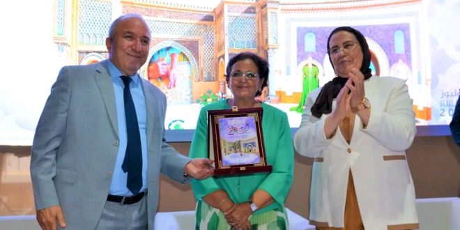 حفل توزيع شواهد المشاركة ،كان بحضورالسيدة أمينة اوفريخن نائبة رئيسة اتحاد نساء المغرب مرفوقة بالسيدة خديجة حجوبي النائبة البرلمانية، ونائبة رئيس مجلس الجهة ،والمدير الجهوي لقطاع الصناعة التقليدية السيد عبد الرحيم بلخياط اللزوكاري ،حيث تمت زيارة أروقة المعرض، وو قفوا على ابداع التعاونيات المشاركة ،