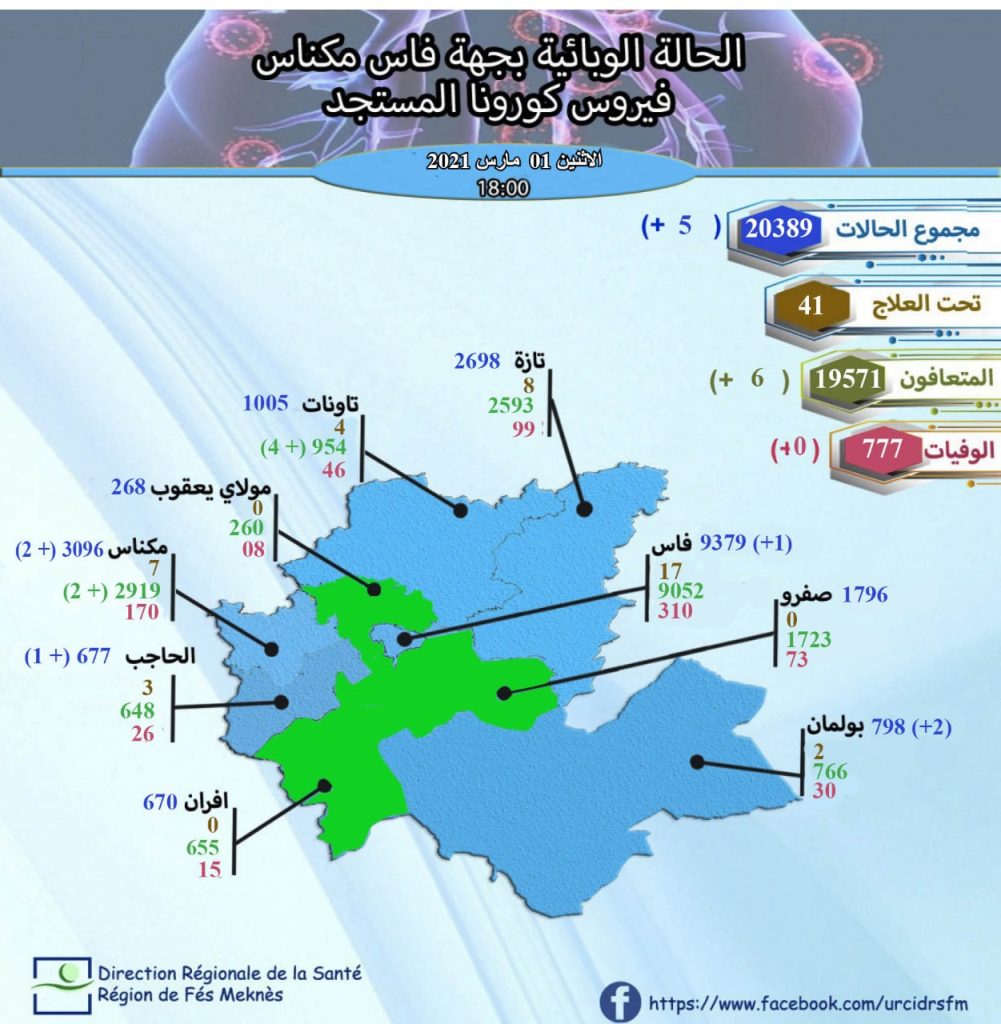 وهكذا اصبحت اقاليم صفرو ومولاي يعقوب وافران خالية من الفيروس ،الذي عاد الى كل من بولمان بحالتين والحاجب بثلاث حالات.