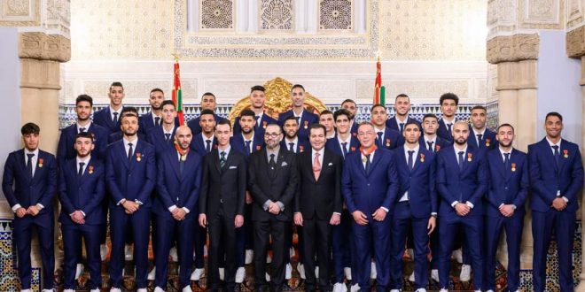 استقبل صاحب الجلالة الملك محمد السادس، نصره الله، مرفوقا بصاحب السمو الملكي ولي العهد الأمير مولاي الحسن وصاحب السمو الملكي الأمير مولاي رشيد، اليوم الثلاثاء بقاعة العرش بالقصر الملكي بالرباط، أعضاء المنتخب الوطني لكرة القدم، بعد أدائهم المتميز في كأس العالم (فيفا) – قطر 2022.