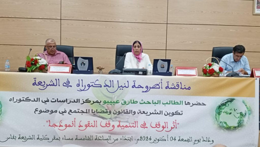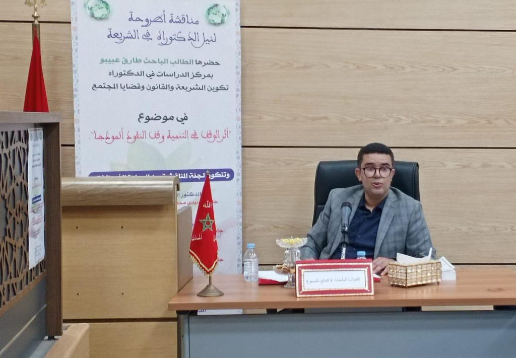 ناقش الطالب الباحث طارق عبيبو باقتدار ، أطروحته ونال درجة الدكتوراه في موضوع :”اثر الوقف في التنمية ..وقف النقود أنموذجا” بمركز الدراسات في الدكتوراه، تكوين الشريعة والقانون وقضايا المجتمع، وذلك امس الجمعة 04اكتوبر 2024 .