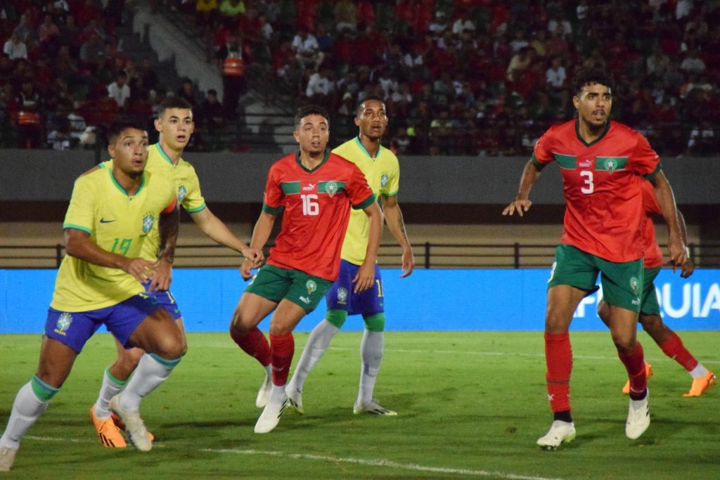 بملعب فاس الكبيروفي اطار الاستعدادات للالعاب الاولمبية المقررة العام القادم في باريس. المنتخب الوطني يهزم نظيره البرازيلي بهدف دون رد.