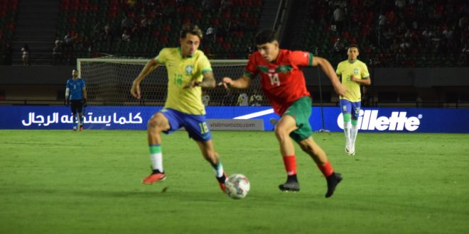 حقق المنتخب الوطني المغربي لاقل من23سنة فوزا مستحقا هلى غريمه البرازيلي،بهدف دون رد،في المباراة التي جمعتهما اول امس الخميس بملعب فاس الكبير،تحت الاضواء الكاشفة التي اصيبت بعطل مفاجىء مع بداية الشوط الثاني من المباراة ،حيث ساد الظلام على الملعب بكامله باستثناء اللوحات الاشهارية المحيطة بالمربع الاخضر ،والتي وضعتها الجامعة الملكية المغربية لكرةوالقدم.