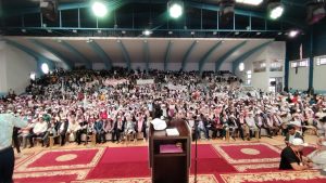 هذا الاحتفال الكبير بحشود غفيرة من العمال والاطر والمستخدمين ،احتضنته القاعة المغطاة 11يناير ،صبيحة فاتح ماي إلى غاية الثانية عشر زوالا موعد انطلاق المسيرة الحاشدة للمشاركات والمشاركين في احتفالات عيد الشغل لهذه السنة.