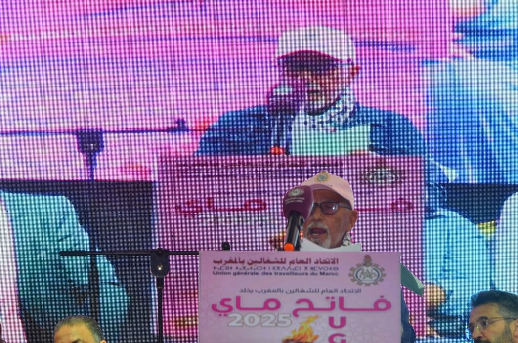 كلمة الاتحاد العام الشغالين وهو يحتفل بعيد العمال واختار شعارا له دلالته:”الحريات النقابية اساس التنمية”.تم فيها استعراض العمل الجاد الذي قام به بين المناسبتين ،معتبرا ان الاحتفال بها يعد محطة سنوية للوقوف على أوضاع الطبقة الشغيلة،وتقييم ما تحقق ،وترتيب الاولويات لما هو قادم وتحيين الملفات المطلبية ،والمساهمة الإيجابية في جلسات الحوار الاجتماعي من أجل انتزاع المكتسبات ،والتصدي للانتهاكات ،والاحتجاج كلما اقتضى الامر ضد السياسات غير الاجتماعية التي تستهدف الطبقة الشغيلة.