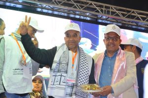 الكاتب الإقليمي للاتحاد العام الشغالين بفاس ،ادريس ابلهاض ،حيى بإشارة الفوز كل المناضلات والمناضلين الذين امتلأت كل جنبات القاعة بهم ،وتسمية كل القطاعات الحاضرة في العيد الاممي ،