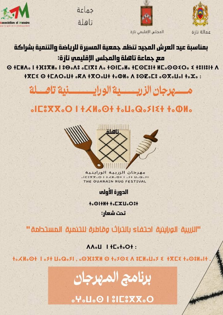 تنظمه جمعية المسيرة للرياضة والتنمية بمناسبة عيد العرش المجيد: مهرجان الزربية الوراينية/تاهلة.