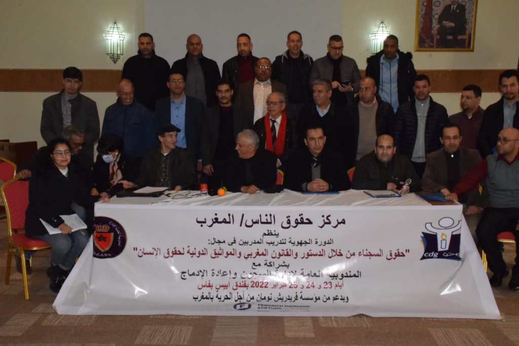 اخنتمت بفاس ، الدورة التدريبية الجهوية لتدريب المدربين في مجال حقوق السجناء من خلال الدستور والقانون المغربي والمواثيق الدولية لحقوق الانسان، وهي الدورة التي ينظمها مركز حقوق الناس المغرب ،بشراكة مع المندوبية العامة لإدارة السجون وإعادة الإدماج ،وبدعم من مؤسسة فريدريش نومان الألمانية من اجل الحرية بالمغرب ،على مدى ثلاثة ايام.لفائدة الأطر التي تعمل بمختلف السجون المغربية.