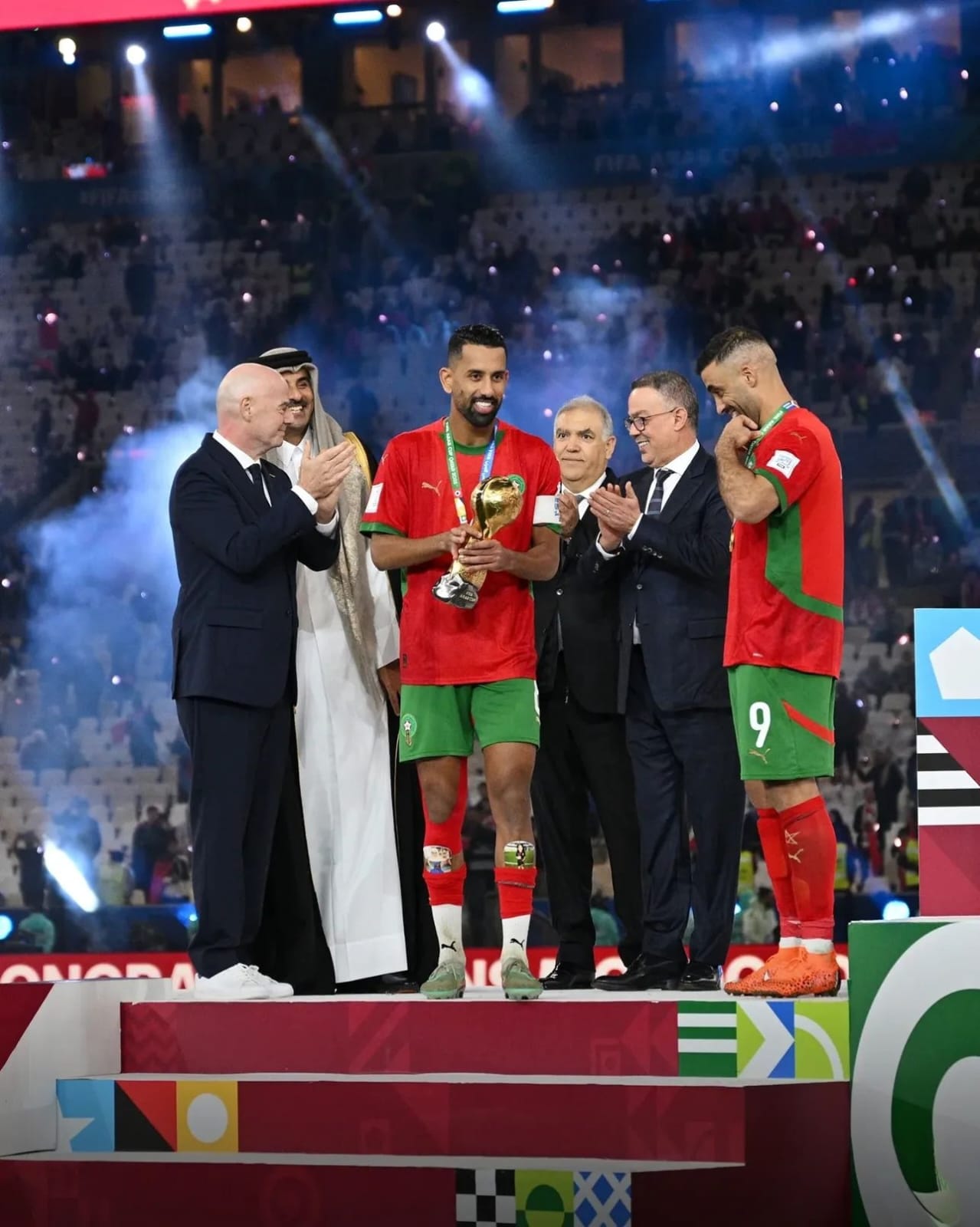 صاحب الجلالة الملك محمد السادس نصره الله يهنىءالمنتخب الرديف بعد احرازه كاس العرب لكرة القدم بقطر .