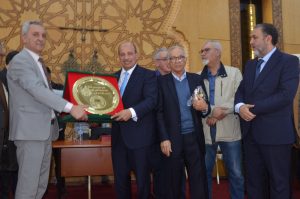 وتحت تصفيقات الحضور الحاشد قدم إدريس ابلهاض الكاتب الإقليمي، هدايا تذكارية بالمناسبة للكاتب الوطني ،النعم ميارة ، كعربون محبة وتقدير على المجهودات التي يبذلها لتحقيق المطالب العادلة للشغيلة المنضوية تحت لواء الاتحاد العام للشغالين بالمغرب.