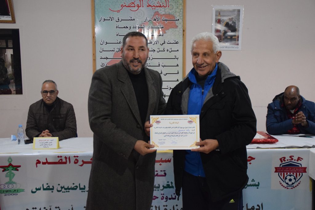 كما قدم رئيس الجمعية السيد هشام شريف الشواهد للفرق الاربعة المشاركة في دوري كرة القدم الذي شاركت فيه الرابطة المغربية للصحافيين يفاس ،وفريقان من سبع عيون ،وفريق قدماء لاعبي عين تاوجطات لكرة القدم.