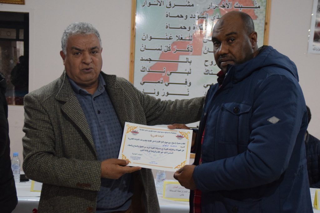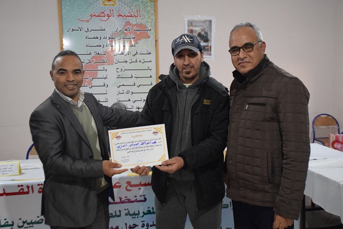 وابى المنظمون الا ان يقدموا شواهد تقديرية لكل من الاستاذ عبد العزيز اليوسفي المدير الاقليمي لوزارة التربية الوطنية والتعليم الاولي ،والرياضة ،باقليم الحاجب ،وزكريا باحو المدير الاقليمي لوزارة الشباب والثقافة والتواصل باقليم صفرو ،على تاطيرهما للمائدة المستديرة ،ومساهماتهما في اغنائها بافكار نورت الحضور المكثف والمميز الذي اثث فضاء دار الطالبة مع تطبيق الاحترازات اللازمة لمحاربة انتشار وباء كورونا المستجد