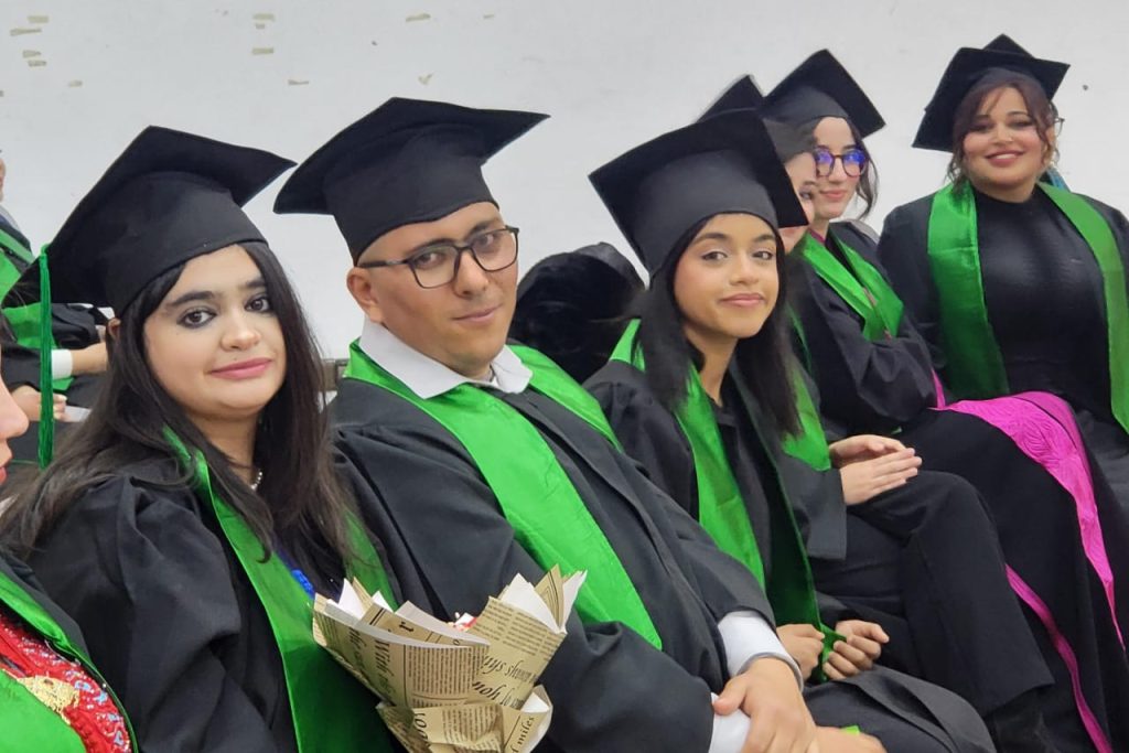 حضور وازن لاولياء امور الخريجين والخريجات :اباء وامهات وابناء جاؤوا ليشارك. فرحة التخرج مع عدد كبير من الخريجين الذين تميزوا بزيهم الاخضر الرائع عن الحاضرين الذين يشكلون فسيفساء المجتمع المدني من بينهم طالبات وطلبة المعهد ،وصحافيون بصموا القطاع ببصماتهم ولا يزالون يواكبون بحسهم الاعلامي كل الأنشطة المختلفة التي تعرفها العاصمة الادريسية … الاستاذ عبد المجيد الكوهن اول رئيس لفرع فاس للنقابة الوطنية للصحافة المغربية الذي راى النور يوم 18مايو1991 وساهم في تأسيسه رجال منهم من قضى نحبه يرحمه الله ،ومنهم من ينتظر. وما بدلوا تبديلا…. وعزيز باكوش الذي واكب هذا المسار الاعلامي للفرع الذي احتفل بذكرى تاسيسه ال34 . ويستمر العطاء …بالايمان يتعاقب الاجيال لحمل مشعل الصحافة بفاس بكل قوة واتزان والتزام .