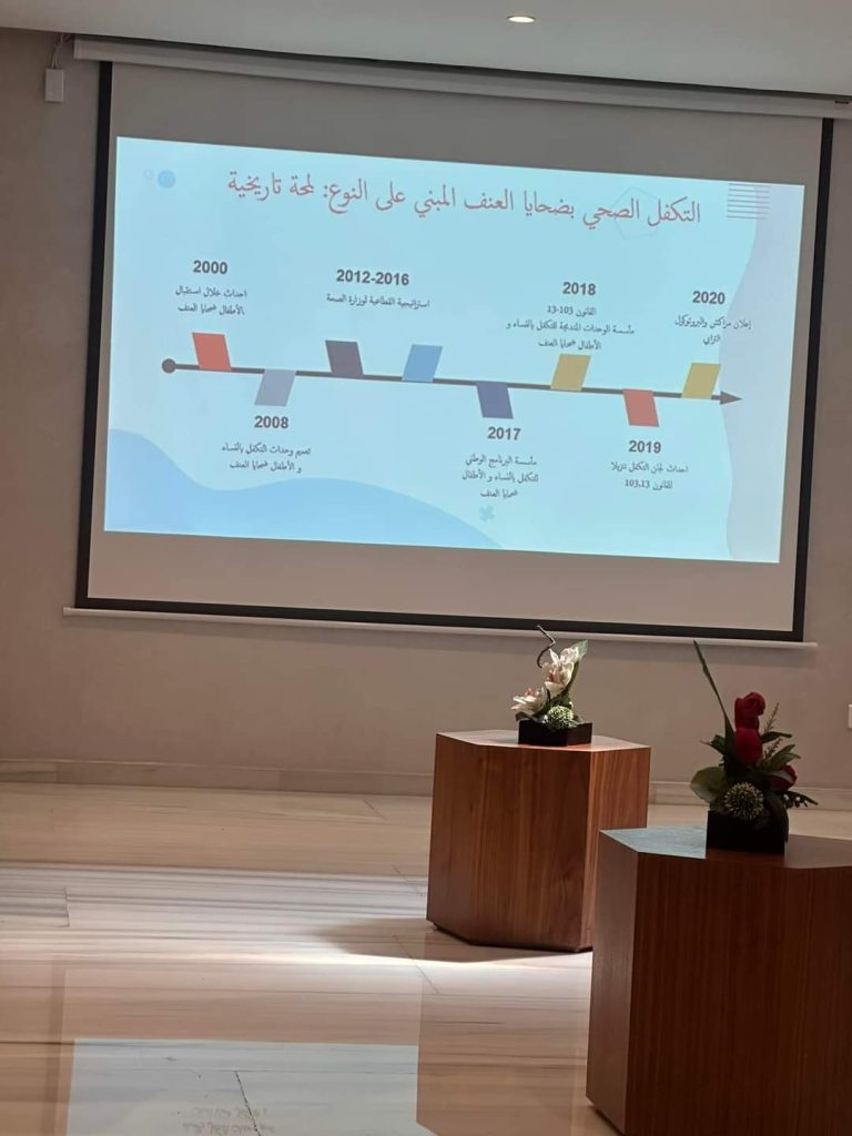 وخلال هذا اللقاء قدمت عروض همت البرنامج الوطني للتكفل بالنساء و الاطفال ضحايا العنف