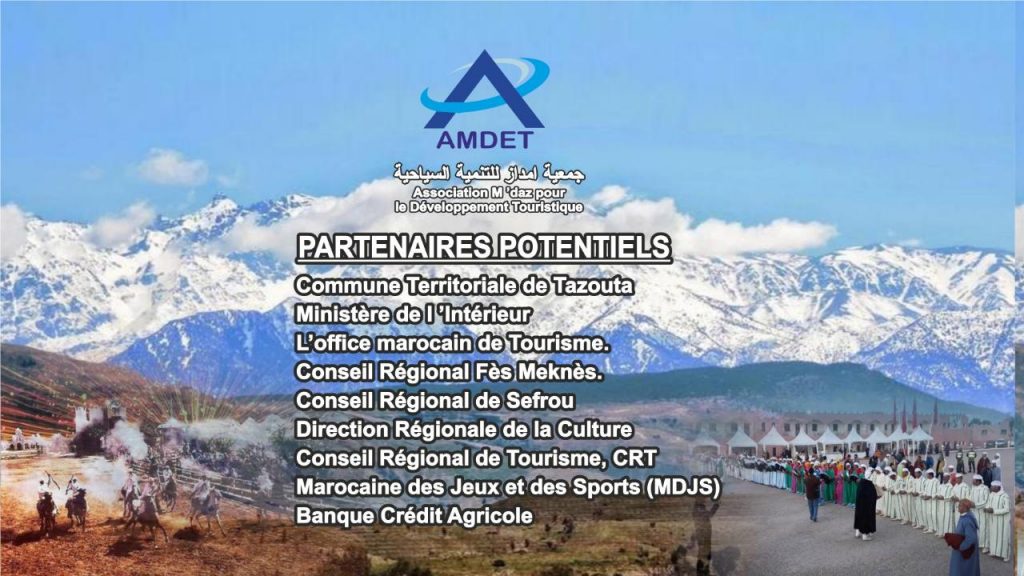 L’Association Mdaz pour le développement touristique ( AMDET ) organise du 22 au 24 Août 2019, la Première Edition du Festival du Tourisme de Montagnes dans la Commune de Tazouta ( Province de Sefrou ).